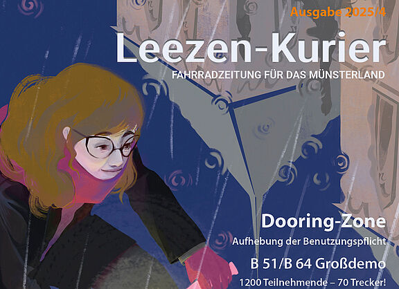 Zusätzlich hat der ADFC Münsterland seine eigene Fahrrad-Zeitschrift: den Leezenkurier. Mit einer Auflage von 9.000 Exemplaren liegt er in Münster und in der Region an vielen Stellen kostenlos aus. Ebenso das Radtourenprogramm, das jedes Jahr über unsere aktuellen Radtouren-Angebote informiert. Alle Auslagestellen finden Sie auch hier auf unserer Homepage.