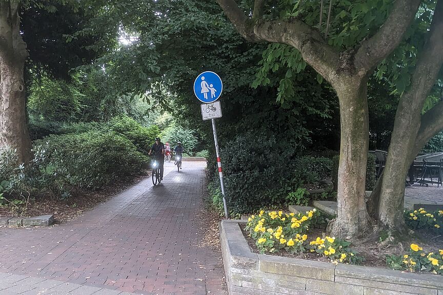Beispiele dazu: Anordnung "Gebotszeichen Fußweg - Fahrrad frei" zwischen dem Freiherr vom Stein Platz (LWL) zur Promenade am Mauritztor und an der Stiftsstraße (höhe Mauritzkirche) stadtauswärts. Hierüber verläuft zudem auch noch der europäische Fernradweg R1 London - St. Petersburg. Beide Anordnungen widersprechen an dieser Stelle der Wichtigkeit und der Nutzung für das Fahrradnetz Münsters.