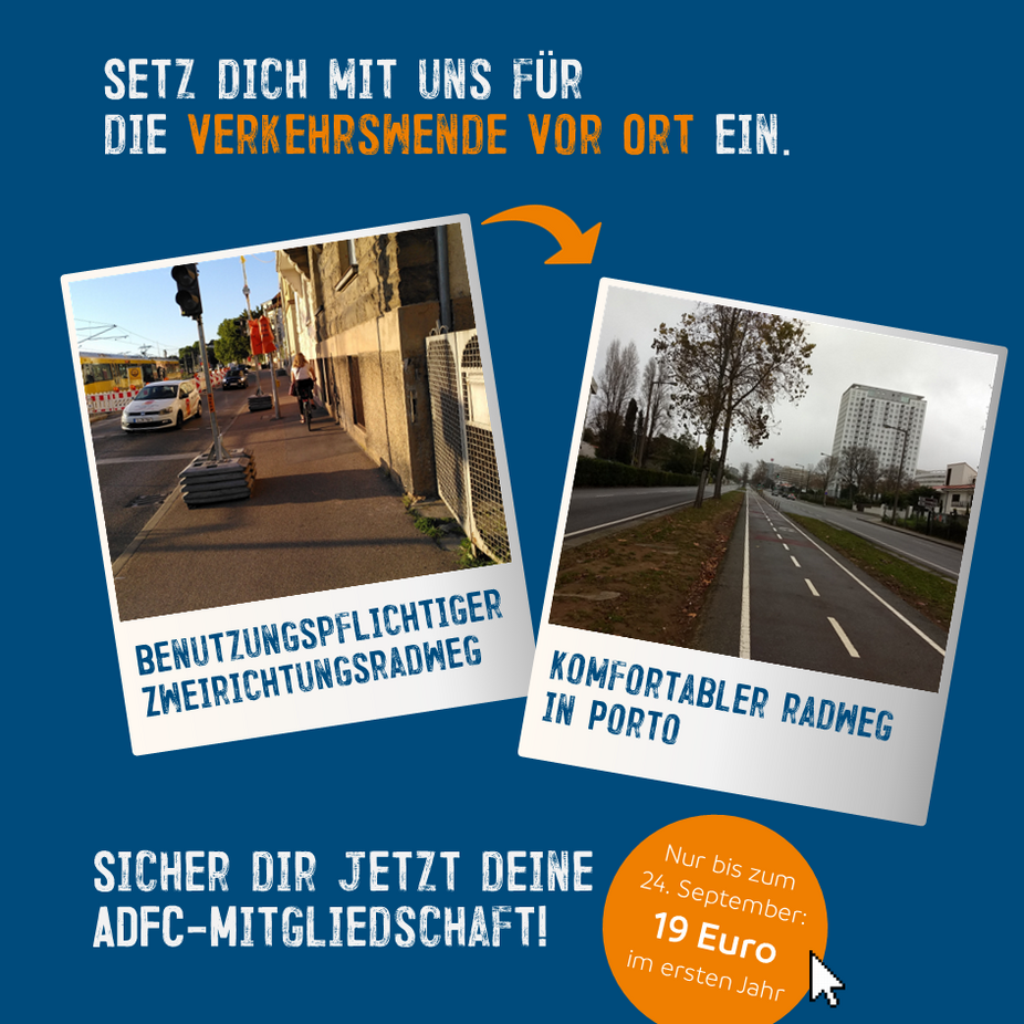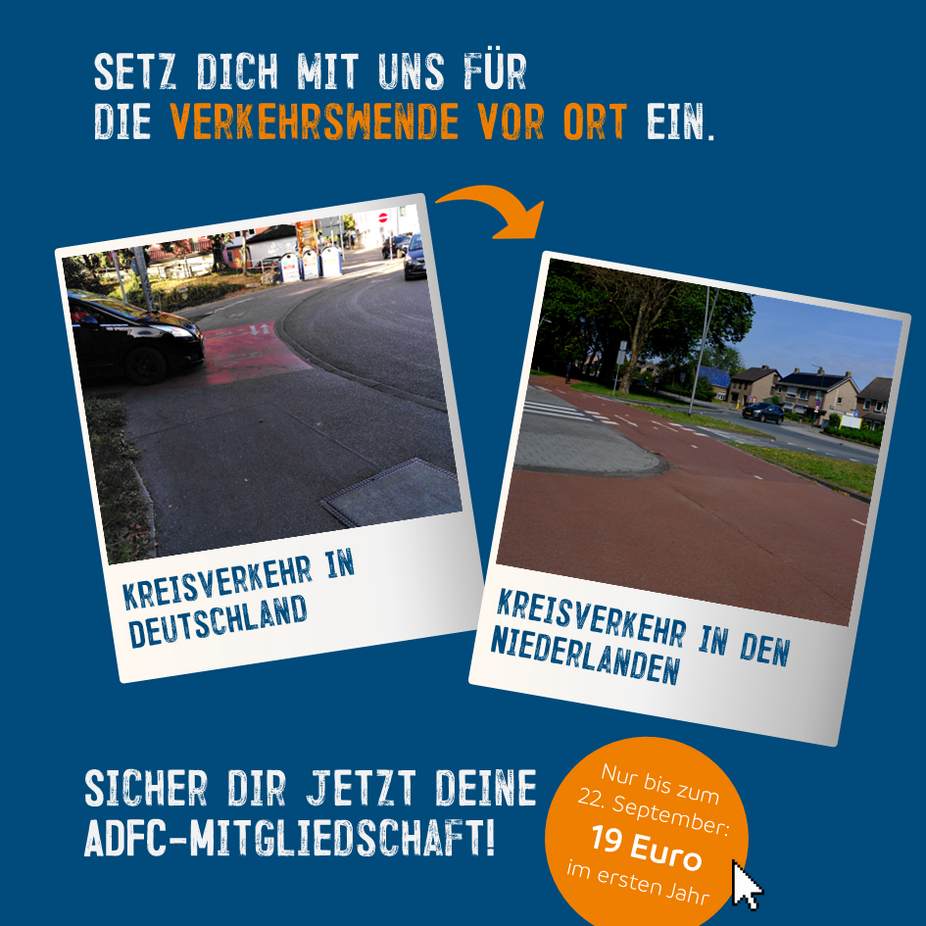 Setzen Sie sich mit uns für die Verkehrswende vor Ort ein und sichern Sie sich jetzt - nur für kurze Zeit und im Rahmen der Europäischen Mobilitätswoche - Ihre ADFC-Mitgliedschaft zum Vorteilspreis (gültig vom 15. - 24. September).